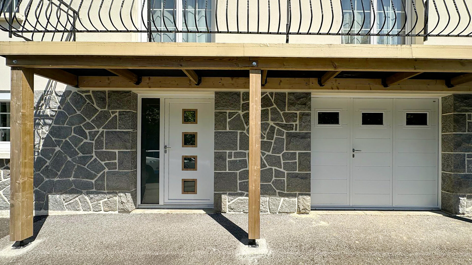 Porte de garage, en aluminium blanc et porte d’entrée, PVC blanc